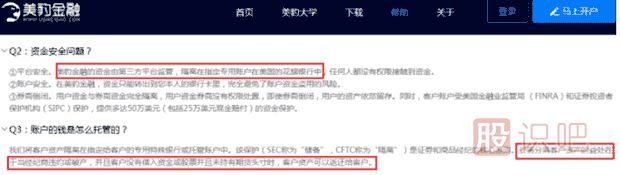 這時候就要看你的錢是給了國內(nèi)代理商幫你看管,還是直接給了專用特殊銀行幫你看管。一般底層美國券商為了防止國內(nèi)代理商跑路或者經(jīng)營不善,都會采取隔離手段,也就是你通過代理商平臺購買美股的資金會存放在專用的特殊銀行,當代理商違約或破產(chǎn)時,底層券商就可以將用戶的錢返回給用戶 。還是上面兩個代理商的例子,我們來看下。美豹