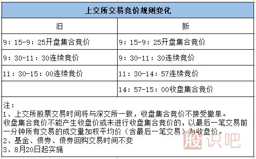 根據(jù)上交所此前發(fā)布的《上海證券交易所交易規(guī)則》等五項(xiàng)調(diào)整后的業(yè)務(wù)規(guī)則,自今日(8月20日)起調(diào)整股票收盤(pán)交易機(jī)制,通過(guò)3分鐘集合競(jìng)價(jià)方式產(chǎn)生收盤(pán)價(jià),收盤(pán)集合競(jìng)價(jià)階段為14:57至15:00。