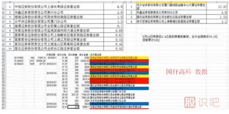 套利案例二(國軒高科5月16日公告,計劃減持2.4億股,按照當日的收盤價計算,合約金額接近79.2億;隨后連續(xù)不斷的有大宗交易進行。通過數(shù)據(jù)計算,通過大宗交易有近20億,占總的1/4