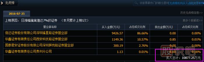 當日龍虎榜顯示,當日成交金額為:10877.25萬,差距很大。