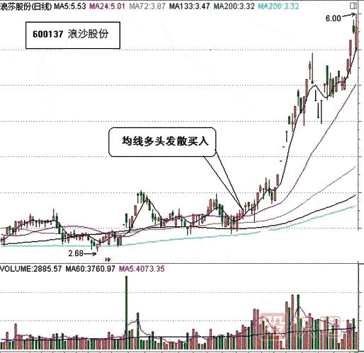 ST浪莎(600137)該股在突破年線之后,反復(fù)回抽確認(rèn)年線和24日生命線以及72日決策線。股價(jià)在不斷溫和上漲的過(guò)程當(dāng)中,均線成為多頭排列。發(fā)散向上的均線組合是超級(jí)強(qiáng)勢(shì)股誕生的標(biāo)記。一旦發(fā)現(xiàn)長(zhǎng)期均線粘合在一起然后形成多頭排列的股票,一定要大膽操作,機(jī)會(huì)通常是巨大的,一次成功的操作可以讓本金翻倍。只有不斷做對(duì)的決策并且勇敢地堅(jiān)持做大波段操作,這樣幾次成功之后,本金就已經(jīng)非常巨大了,隨時(shí)買(mǎi)賣(mài)都可能成為十大股東。