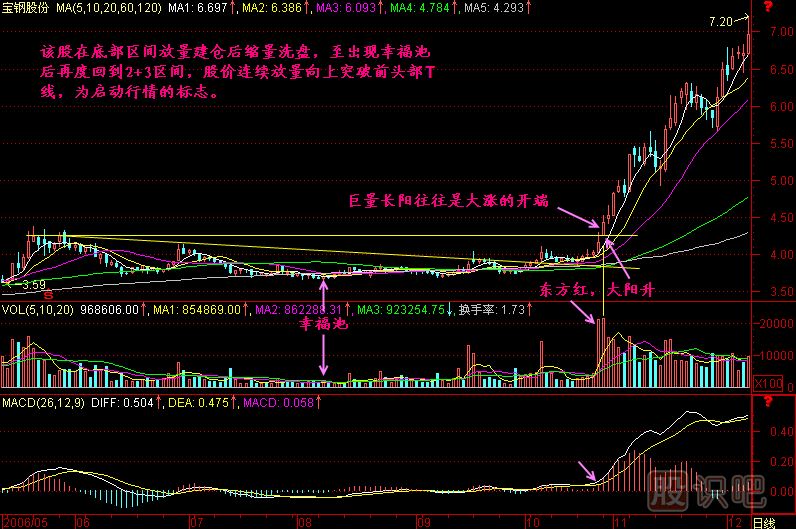 所以我們一般要尋找的是2+3區(qū)間,洗盤完畢、形態(tài)做好后放量向上突破平臺(tái)的那根陽(yáng)線,這才是力度較大的巨量長(zhǎng)陽(yáng)往往是大漲的開(kāi)端!