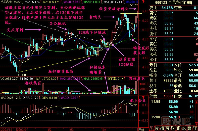 小結(jié):120線下拉鋸戰(zhàn)是散戶消耗戰(zhàn),散戶最終都將在拉鋸戰(zhàn)中戰(zhàn)敗而乖乖交出籌碼,在拉鋸戰(zhàn)末端一般都有量萎縮,說(shuō)明已經(jīng)達(dá)到莊家洗盤的目的,那么只要后期一根放量陽(yáng)線突破拉鋸戰(zhàn)壓力線和120防線,行情就啟動(dòng)了,起碼要漲一段路。