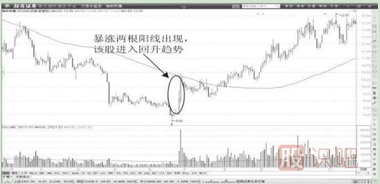 【結(jié)論】:空頭趨勢中,簡單的放量大陽線可以改變股價運行趨勢。隨后,我們超短線交易的資金也應(yīng)該相應(yīng)地放大。只有這樣,才可能在價格回升期間獲得更高的回報。