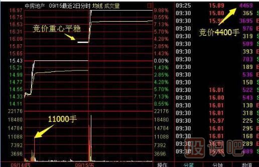 競(jìng)價(jià)分時(shí)常見(jiàn)兩種。第一種是重心逐漸下移,不佳;第二種重心平穩(wěn),最佳。對(duì)應(yīng)的案例有銀江股份和中房地產(chǎn),兩者競(jìng)價(jià)均放量,但分時(shí)不同,最終的結(jié)果也不同。