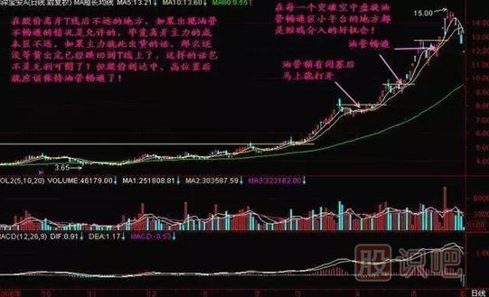 3、在股價(jià)高開T線后不遠(yuǎn)的地方,如果出現(xiàn)油管不暢通的情況是允許的。畢竟高阿奎主力的成本區(qū)不遠(yuǎn),如果主力就此出貨的話,那么還沒等貨出完已經(jīng)跌回去T線上了,這樣的話豈不是無利可圖了。但是股價(jià)到達(dá)中,高尾椎以后就應(yīng)該保持油管暢通。