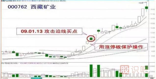 個股有效沖擊年線,在年線上方拉出第一根長陽或漲停,之后連續(xù)3-5天連續(xù)縮量回壓年線確認,構(gòu)成短線買點,稱為千金難買?;仡^。