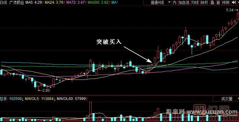 (2)突破所有均線組合的時(shí)候就是短線最佳切入點(diǎn),買入就是最好的操作。