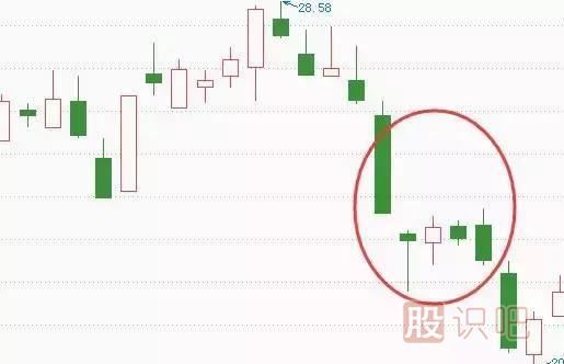 下降三法又稱下跌三部曲,出現(xiàn)在股價(jià)下跌過(guò)程中,由大小不等的5根K線組成。這5根K線中,第一根K線為大陰線或中陰線,接下來(lái)三根為小陽(yáng)線,但都沒(méi)有向上突破前面第一根陰線的開(kāi)盤價(jià),之后出現(xiàn)一根大陰線或中陰線,且其收盤價(jià)要低于第一根陰線的收盤價(jià)。