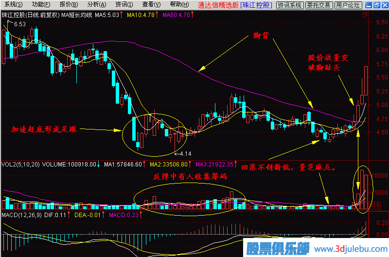 五分鐘短線交易技巧解答“一腳踢出大黑馬”在短線是銀之一里有這樣一節(jié),叫“一腳踢出大黑馬”,又稱“赤腳底”。赤腳底有其形成機(jī)理。莊家往往在下跌后期有一個(gè)加速趕...