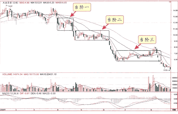 ?跟莊炒股淺說莊家臺(tái)階式出貨+打壓式出貨方法