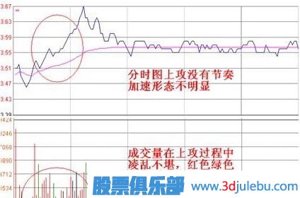 1、分時圖走勢攻擊性強,上漲則快速拉高,同時成交量放大,在推高過程中,一般呈現加速上攻的形態(tài),而不能是拱形上漲。