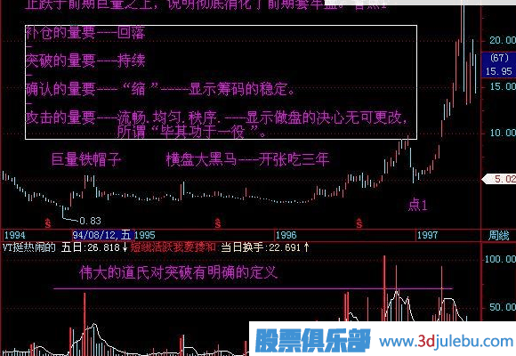 成交量堆積是另一個(gè)重要的觀察對(duì)象,它對(duì)于判斷主力的建倉成本有著重要作用。除了剛上市的新股外,大部分股票都有一個(gè)密集成交區(qū)域,股價(jià)要突破該區(qū)域需要消耗大量的能量,而它也就成為主力重要的建倉區(qū)域,往往可以在此處以相對(duì)較低的成本收集到大量籌碼。所以,那些剛剛突破歷史上重要套牢區(qū),并且在以下區(qū)域內(nèi)累積成交量創(chuàng)出歷史新高的個(gè)股,就非常值得關(guān)注,因?yàn)樗砻餍陆槿胫髁Φ膶?shí)力遠(yuǎn)勝于以往,其建倉成本亦較高,如果后市沒有較大空間的話,大資金是不會(huì)輕易為場(chǎng)內(nèi)資金解套的。但如果累積成交量并不大,即所謂“輕松過頂”,則需要提高警惕,因?yàn)檫@往往股票軟件看盤強(qiáng)調(diào)觀察成交量的變化進(jìn)行買賣股票系原有主力所為,由于籌碼已有大量積累,使得拉抬較為輕松。盡管這并不一定意味著股價(jià)不能創(chuàng)出新高,但無疑主力的成本比表面看到的要低一些,因此操作時(shí)需要更加重視風(fēng)險(xiǎn)控制,股市整體走勢(shì)趨弱時(shí)尤其需要謹(jǐn)慎。需要指出的是,在主力開始建倉后,某一區(qū)域的成交量越密集,則主力的建倉成本就越靠近這一區(qū)域,因?yàn)闊o論是真實(shí)買入還是主力對(duì)敲,均需耗費(fèi)成本,密集成交區(qū)也就是主力最重要的成本區(qū),累積成交量和換手率越高,則主力的籌碼積累就越充分,而且往往實(shí)力也較強(qiáng),此類股票一旦時(shí)機(jī)成熟,往往有可能一鳴驚人,成為一匹“超級(jí)大黑馬”