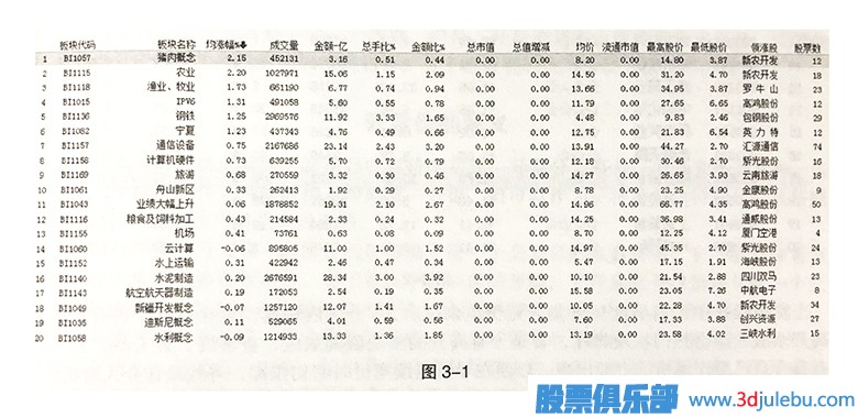 如何從集合竟價看當(dāng)日熱點板塊 板塊熱點的把握上,以2011年12月26日開盤為例(如圖3-1),豬肉概念競價排名第另外,與豬肉概念聯(lián)動性較好的農(nóng)業(yè)板塊也位列前茅。這顯示其高舉高打的強(qiáng)勢,我們應(yīng)配合大盤,密切關(guān)注主力短線調(diào)倉的可能性。