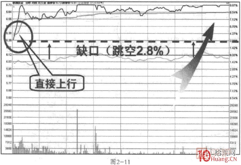 注意:在有跳空缺口的開盤中,開盤后有沒有立刻回補(bǔ)缺口的動(dòng)作以及該動(dòng)作的力度大小,是決定全天走勢方向是否明朗的重要標(biāo)志。