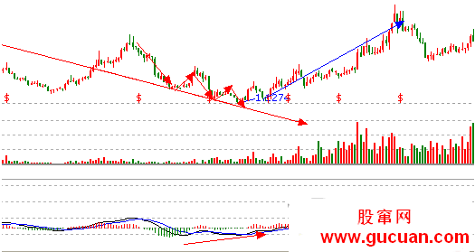 4、指標(biāo)必須有明顯的背離,價(jià)格新低但MACD柱子縮短,柱子翻紅證明強(qiáng)勢;