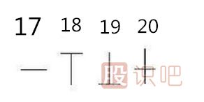 19、倒丁字線,也稱靈位線,處在高位,顯示見頂信號;處在低位,顯示見底信號。