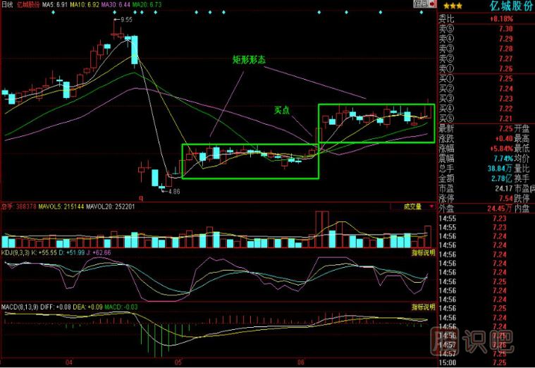 億城股份(000616)經(jīng)典矩形K線形態(tài)(疊形)示意圖