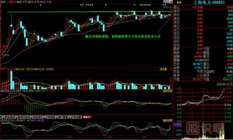 1、放量初現(xiàn)托塔天王技術(shù)形態(tài),在隨后的小K線整理中是介入點(diǎn);