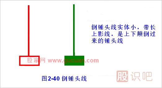 倒錘頭線,就是將上一節(jié)錘頭線顛倒過來的一種圖形,如圖2-40所示。倒錘頭線實體一般較小,帶有較長的上影線,沒有下影線或者只有極小的一點下影(可以忽略不計)。