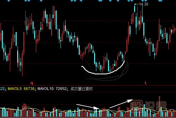萬邦達(dá)(300055)2013年8月-10月圓形底。如圖大家能清楚地從圖中看到該股圓形底特點(diǎn)一是縮量,二是規(guī)律性的底部量能左邊遞減、右邊遞增的節(jié)奏性變化,這符合事物發(fā)展的一般規(guī)律,且這種底部真實(shí)性最高,所以通常較為安全。