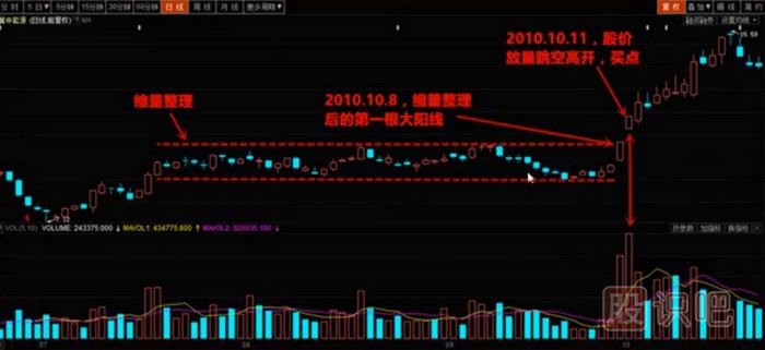 1.股價縮量整理時間越長,接下來出現(xiàn)的上漲走勢漲幅就越大,這就是我們經(jīng)常所說的“橫有多長,豎就有多高”