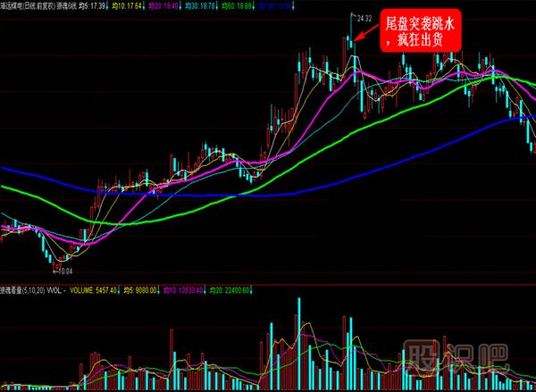 出貨型尾盤跳水是指莊家為了不驚動(dòng)散戶,在全天交易過程中不進(jìn)行瘋狂拋售,而采用在尾盤趁散戶不注意進(jìn)行突襲瘋狂出貨的手法。這種情況往往發(fā)生在高位區(qū)間。