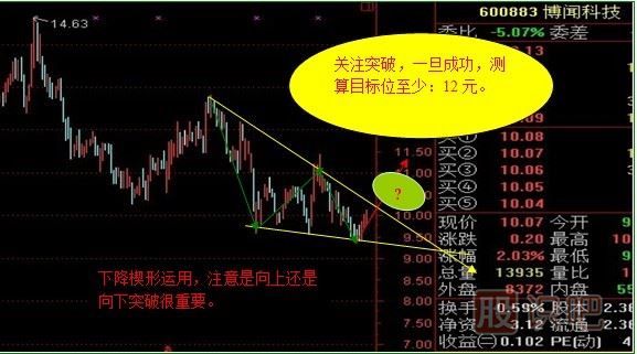 楔形是一種持續(xù)形態(tài),適用于中線分析,通常拖延至三至六個月時間,短線分析意義不大,而且容易被騙。上周在盤中給大家提示的下降楔形最后被騙就是這個道理。向大家道歉了,接下來我會更加謹慎和努力為大家服務好。