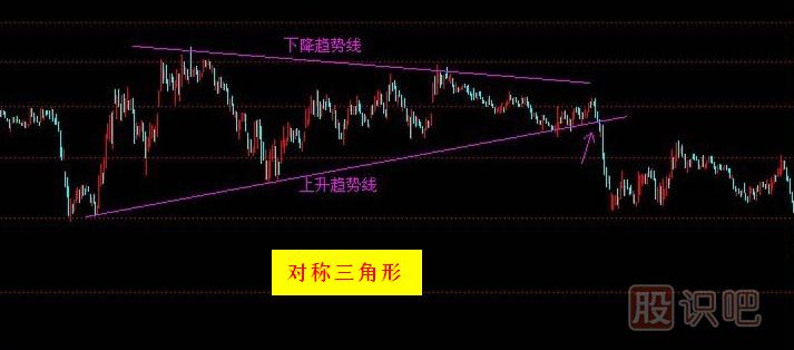 成交量在對稱三角形成的過程中不斷減少,正反映出好淡力量對后市猶疑不決的觀望態(tài)度,使得市場暫時(shí)沉寂。