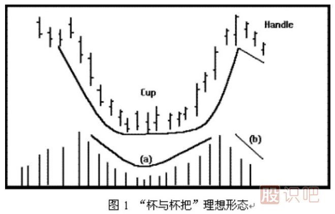 雖然成交量指標有助于“杯與杯把”形態(tài)的確認,但價格形態(tài)本身更為重要,由于成交量不會完全與價格走勢亦步亦趨,因此不應(yīng)簡單地靠成交量來定義一個“杯與杯把”形態(tài)。