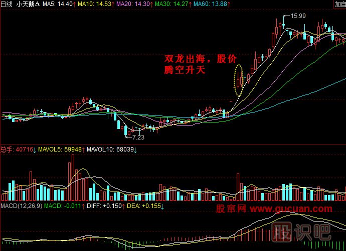 1.雙龍出海是股價(jià)騰空前震倉洗盤的信號(hào)。