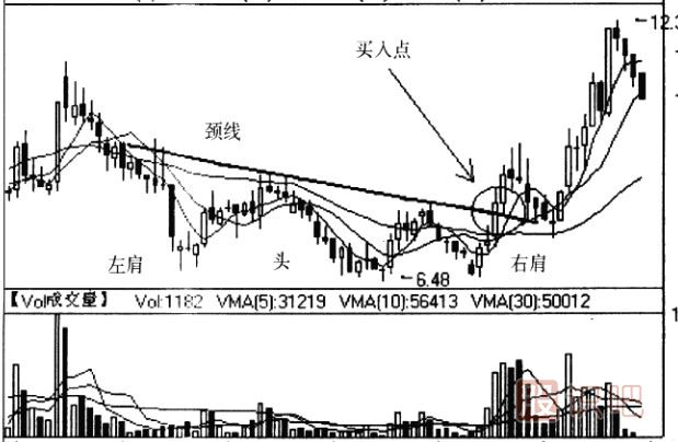 從上圖中我們可以看到,該頭肩底形態(tài)基本符合以上5個(gè)特征,而且該形態(tài)形成時(shí)間也較長(zhǎng)(將近一年),在將近一年的時(shí)間內(nèi)筑底,其漲勢(shì)也應(yīng)該是驚人的,投資者可果斷地買進(jìn)股票。