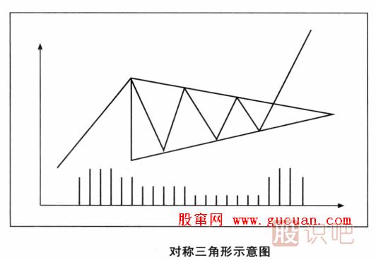 在一般情況下,三角形屬于持續(xù)整理形態(tài)。三角形形態(tài)又可分為對稱三角形、上升三角形和下降三角形。由于三者的形成過程和判斷時需要注意的地方都基本相同,在這里以對稱三角形為例來介紹。
