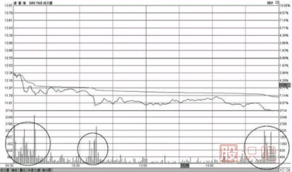 股票指標(biāo)技術(shù)分析強調(diào)分時圖早盤出現(xiàn)大賣盤放量打壓下跌形態(tài)的操盤技巧