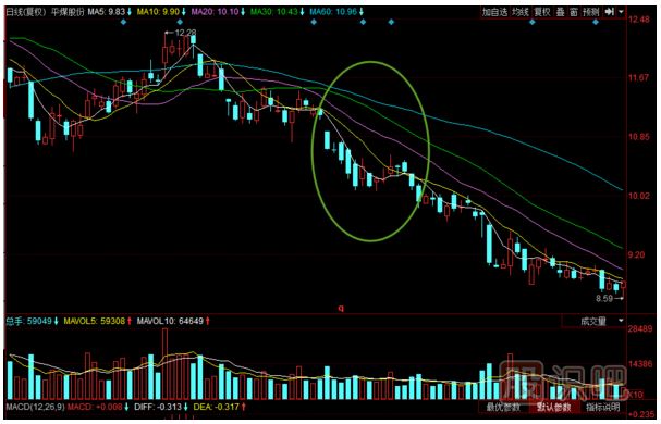 形態(tài)分析之下跌不止形實(shí)例:平煤股份股價(jià)在2012年的下跌途中,于6月中旬出現(xiàn)下跌不止形形態(tài),股價(jià)繼續(xù)一路下行,繼續(xù)下跌的趨勢(shì)。形態(tài)簡(jiǎn)介:下跌不止形形...