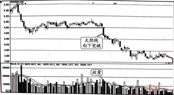 (1)股價跌破整理區(qū)出現(xiàn)的中、大陰線并不需要有成交量放大的配合。