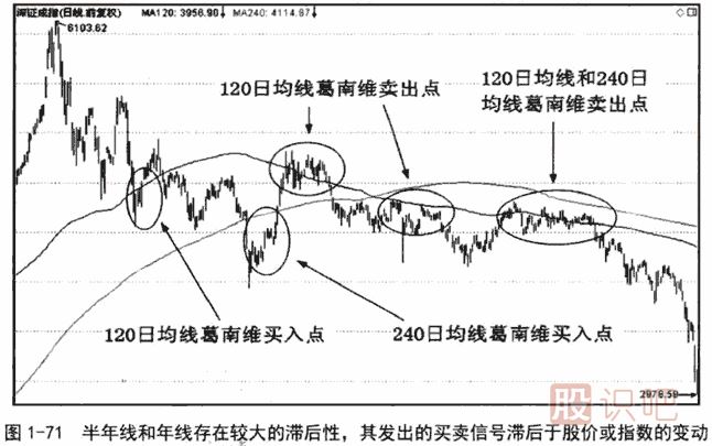 年線和半年線通常用于判斷趨勢(shì)強(qiáng)弱和選股,用于確定進(jìn)出場(chǎng)標(biāo)準(zhǔn)時(shí),由于存在著嚴(yán)重的滯后性,作用價(jià)值不大。