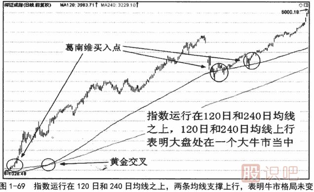 120日和240日均線黃金交叉后一直呈多頭排列,交易者在此期間可以持股不動(dòng)。