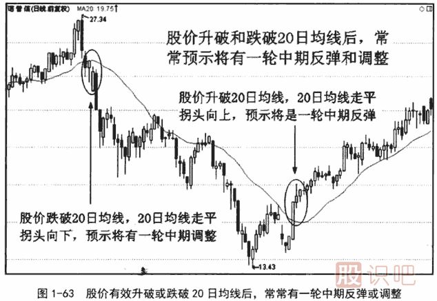 道氏理論中的中期趨勢(shì)一般持續(xù)幾個(gè)星期至幾個(gè)月不等,與之相對(duì)應(yīng)的,均線的周期也在20日(3個(gè)星期)至幾個(gè)月之間。由于均線具有滯后的持點(diǎn),所以本應(yīng)屬于中期均線的120日均線,就被人們習(xí)慣性地歸于長期均線中了。中期均線比較常用的主要有20日均線、30日均線和60日均線。
