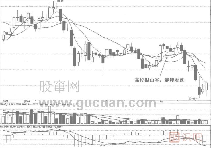 2.高位銀山谷,后市看跌,擇機(jī)離場。