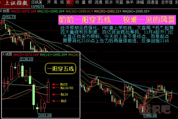 均線買入形態(tài):一陽穿多線