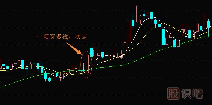 一陽穿多線的買點(diǎn)一陽穿多線的買點(diǎn)當(dāng)股價(jià)橫盤整理一段時(shí)間后,其多條均線往往會持續(xù)糾在一起。此時(shí)如果出現(xiàn)一根長陽線,一舉向上穿越多條均線,就...