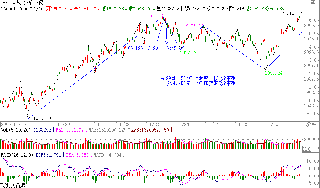 趨勢中第二個中樞開始,一般1分中樞以5日線為強支撐;5分中樞通常會破5日線,考驗10日線;30分中樞即日線筆中樞一般破34日線,考驗55日線,89日線有強支撐或壓力。具體考驗?zāi)臈l均線,與該中樞前的次級別有關(guān),如果前次級別有3個以上中樞,相應(yīng)考驗均線要后移,這與波浪理論中的回調(diào)幅度有一定關(guān)系。